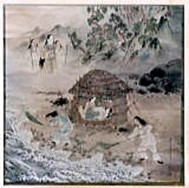 ある嵐の日、豊玉姫の出産が始まりましたが、その産屋には鵜の羽根を葺き終えることができませんでした。葺き終えることができないままに産まれた皇子ということで、「鵜草葺不合命」です。また、なぜか海辺に建てた産屋には、次から次へと、大量に蟹の群れがやってきたのです。このままでは、豊玉姫の産屋に蟹が入り込んでしまう。困った山幸彦のもとに現れたのが「掃守連(かもりのむらじ)」です。彼らは箒で蟹を箒で払いのけ、そのおかげで豊玉姫は無事にお産を終えることができました。